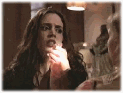 "Buffy" and asks her if she's okay. "Buffy," smiling evilly,